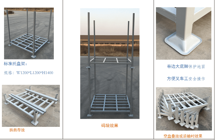 40C型托盤架 產(chǎn)品介紹:本產(chǎn)品主要優(yōu)點是與叉車配合實用,可充分利用倉庫高度空間。降低倉儲費用,管理和經(jīng)營費用。主要用于軟袋子包裝和紙箱包裝物品存放和顆粒物品存放防止積壓,常用于冷鏈、飼料、塑料顆粒倉儲及物流。