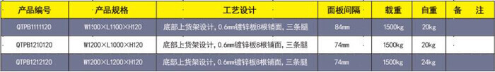 產(chǎn)品名稱:輕型B型鍍鋅托盤 產(chǎn)品編號:QTPB1210120 產(chǎn)品規(guī)格:W1200×L1000×H120 托盤主孔:100mm 托盤側(cè)孔:80 mm 產(chǎn)品自重:20kg 產(chǎn)品靜載:800kg 產(chǎn)品動載:600kg 上貨架載:300kg 產(chǎn)品配置:采用寶鋼鍍鋅板軋機(jī)成0.6*10*85多筋骨面板 10根,以間隔84mm 和6根板做腿+12個立撐 組成。 產(chǎn)品用途:廣泛用于酒水、食品、化工、電子等大量物品 倉儲與周轉(zhuǎn)。本結(jié)構(gòu)為上貨架設(shè)計(jì)。