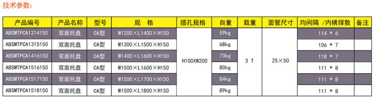 CA型圓角雙面鋼托盤 產(chǎn)品用途:主要為大批量軟包裝物品存儲和周轉設計(袋裝)。采用圓角工藝,完善傳統(tǒng)式四個尖角焊接,主要防止麻袋在放置時不容易刮破。